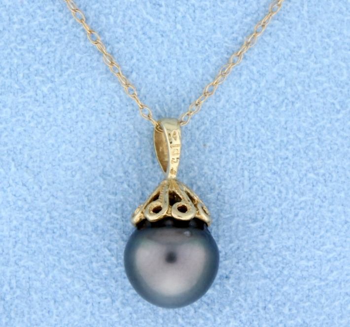 This stunning 9.3mm Tahitian Pearl, set in 14k yellow gold is a beautiful addition any day of the week! The chain is 18" long and also 14k yellow gold. This is a classic piece of fine jewelry. 2.1g