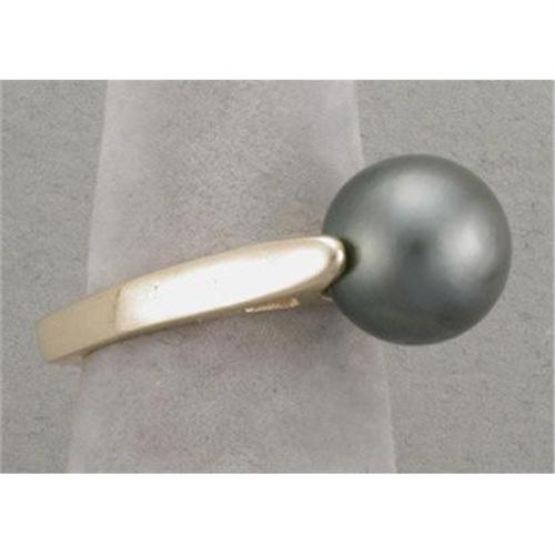 Stunning and modern - Tahitian black pearl (10.68MM) ring. The cultured Tahitian black pearl has nice luster and is set in a 14K mounting. It is a size 6 and weighs 7.1 grams.