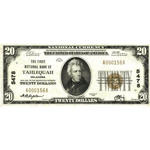 Tahlequah, OK - $20 1929 Ty. 1 The First NB Ch. # 5478A