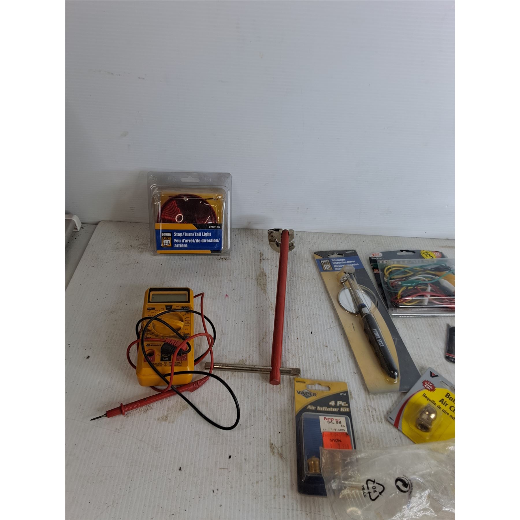 Tail Light, Telescopic Inspection Mirror, Air Inflator Kit, Ball Foot Air Chuck, Misc