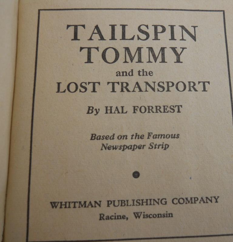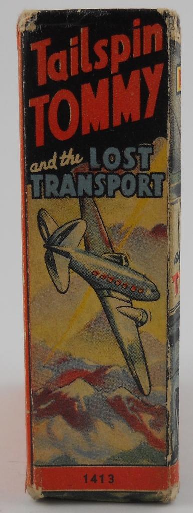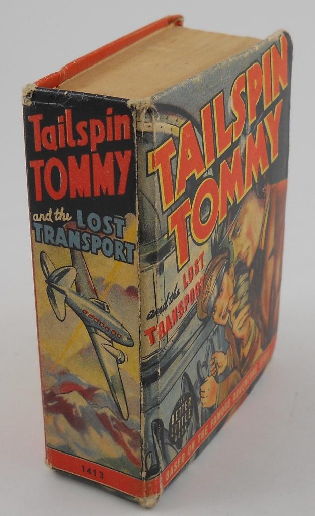 "Tailspin Tommy and the Lost Transport" was published in 1940 and is based on the famous newspaper strip. This book is number 1413 of The Better Little Book series. It is a hard cover with 426 pages, and every other page has a comic like drawing. It measures about 3-1/2 inches x 4-1/2 inches.