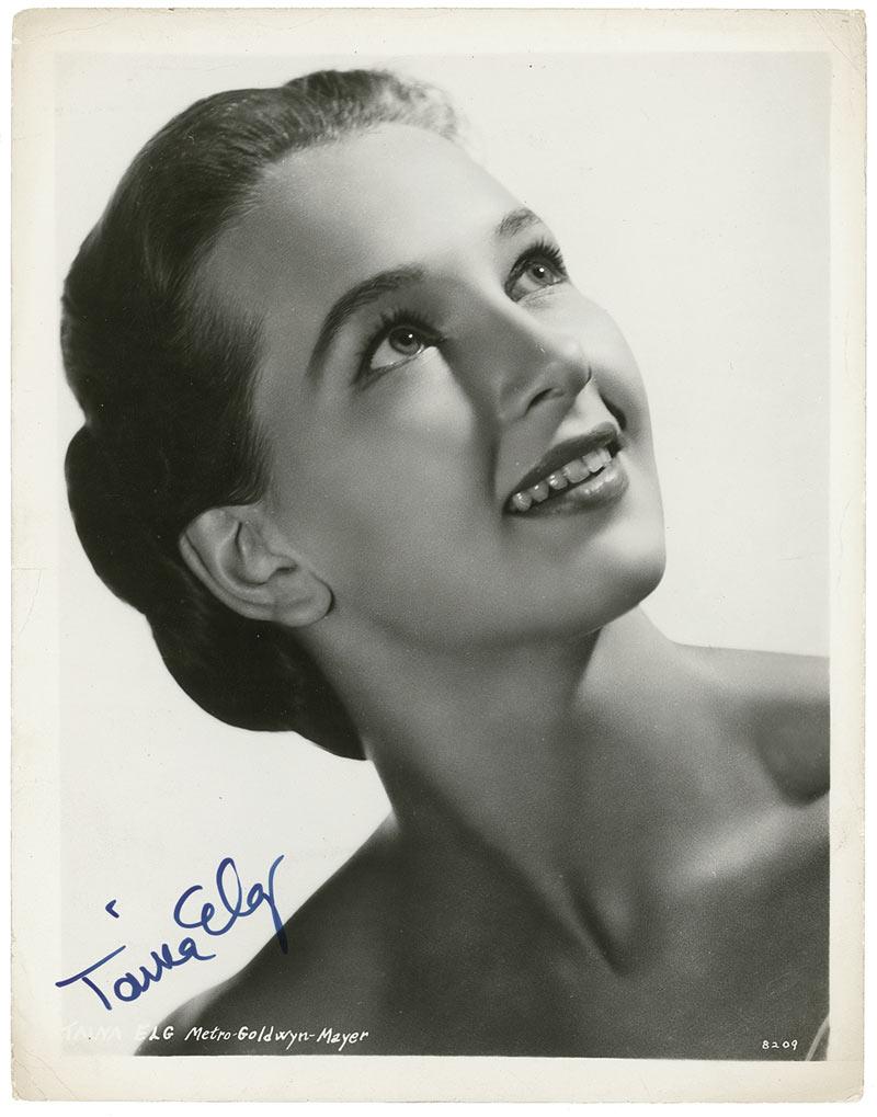 Vintage glossy 8 x 10 MGM publicity photo, signed later in blue felt tip. In very good condition, with scattered edge creases and tears, and a few light surface marks.