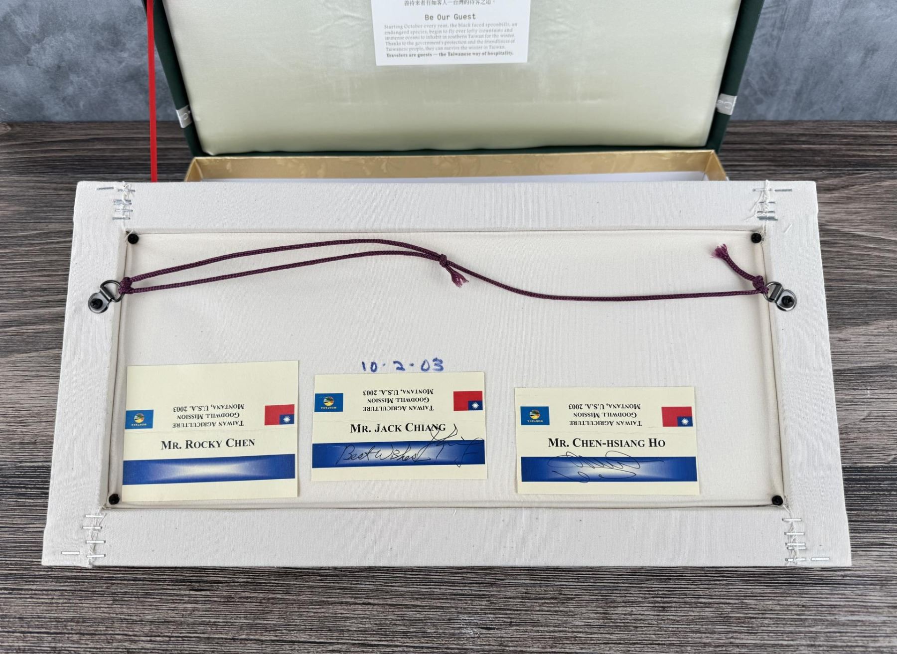 Presented to Montana Governor Judy Martz by the Republic of Taiwan. Box is 17 3/4" by 9" by 2".