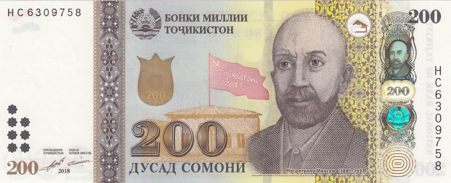Tajikistan, 200 Somoni, 2018, UNC, p28cbr/serial number: HC 6309758