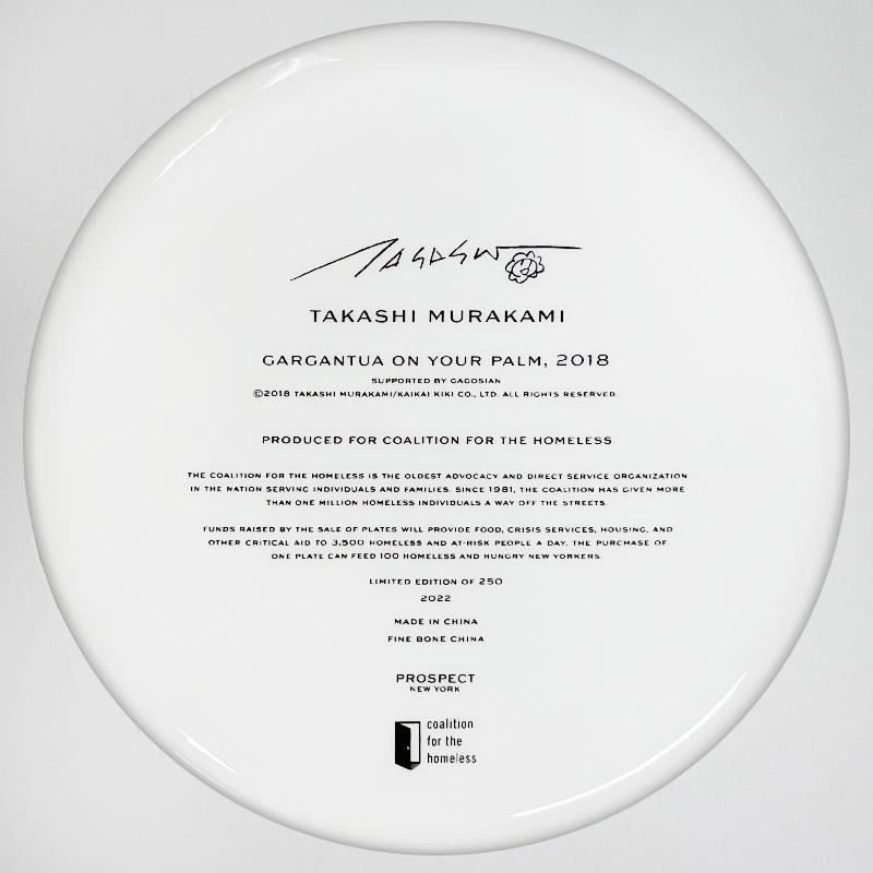 "Gargantua on Your Palm" is a limited edition plate by Takashi Murakami. This plate is custom framed and floated on linen. Includes Letter of Authenticity. Measures approx. 15.5" x 15.5" (frame), 10.5" (plate diameter).