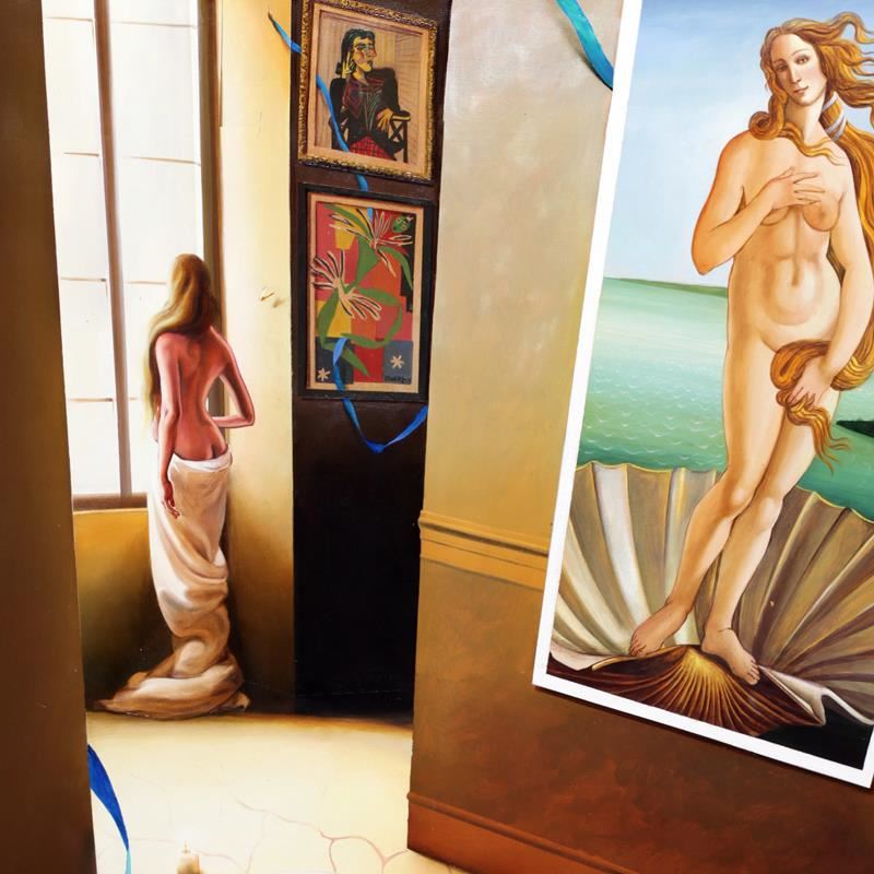 "Take Me With You" is an original acrylic painting on canvas by Orlando Quevedo, hand signed by the artist. Includes a Certificate of Authenticity. Measures approximately 36" x 49.5".