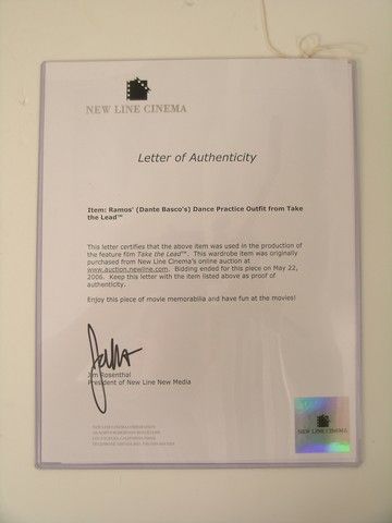 "Take The Lead" (2006), is based on a true story of a dance teacher who finds a way into the hearts and minds of some pretty rough street kids, this is one of those kid's, Ramos, (Dante Basco) dance practice outfit, jacket, pants and shoes. Comes with a COA.