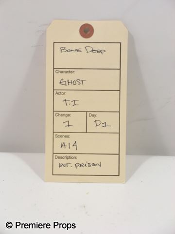Ghost (T.I.) screen worn, hero, light blue long sleeve button front, two pocket 'Red Kar' shirt, (size L) white short sleeve crew neck 'J. Crew' t-shirt, (size M) navy 'Dickies' pants, (size 34 x 34) and black slip on with white sole 'BBC' shoes. (size 9) Includes wardrobe tag!