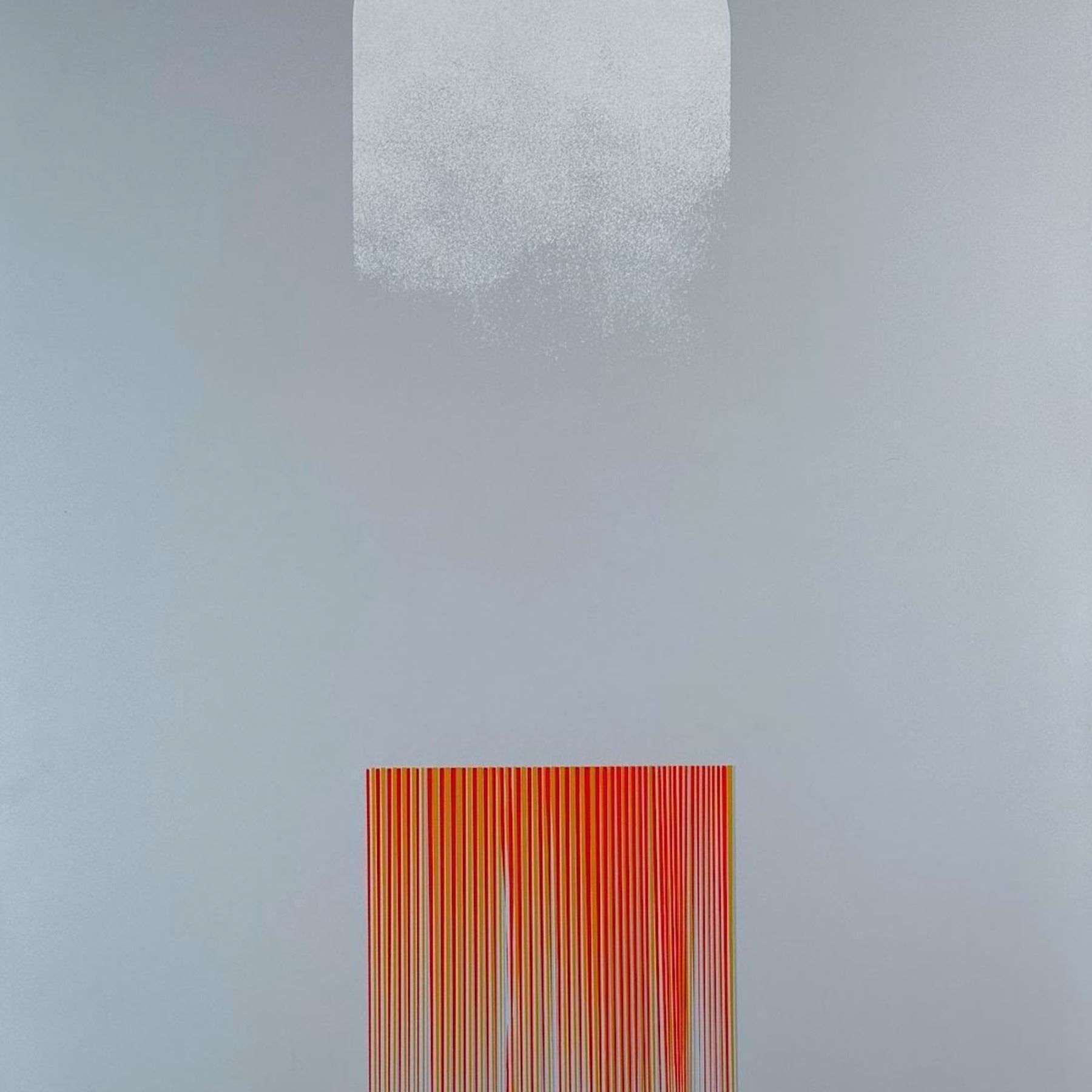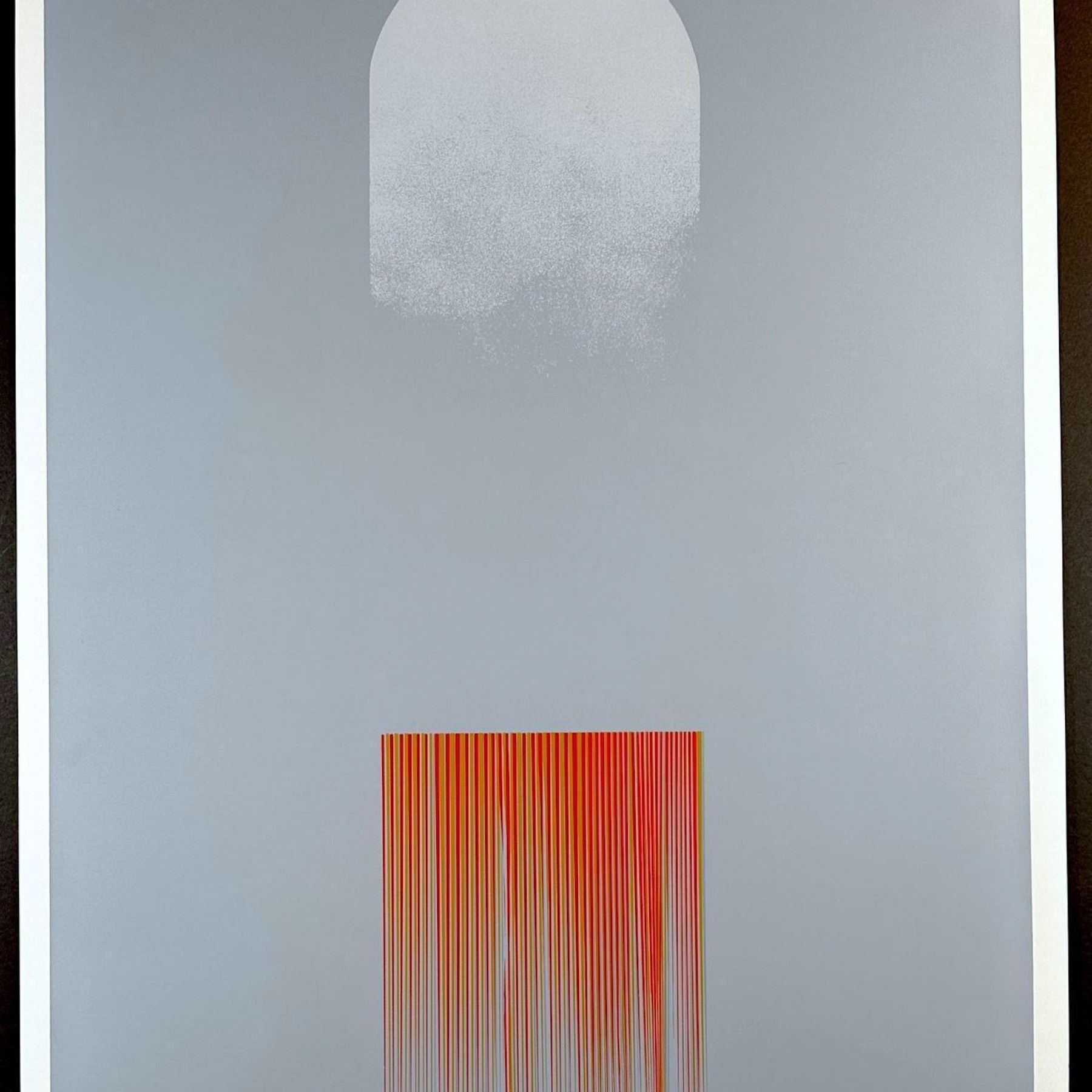 This striking screenprint, titled Fly, showcases Takesada Matsutani's mastery of abstract art. Created in 1971, the composition features a gradient gray background with an ethereal white arch above cascading red linear patterns, evoking a dynamic sense of movement and balance. The print is signed by the artist in pencil on the lower right, numbered 13/75, and titled Fly. Sight size measures 22.25" x 28". Matsutani, a key member of the renowned Gutai Art Association, is celebrated for his innovative techniques and exploration of texture, form, and movement. His works are highly sought after by collectors worldwide, making this limited-edition screenprint an exceptional addition to any modern art collection.