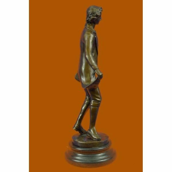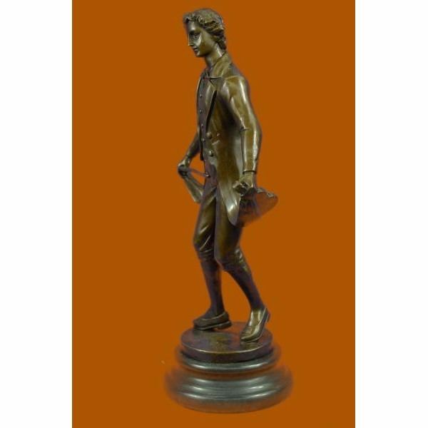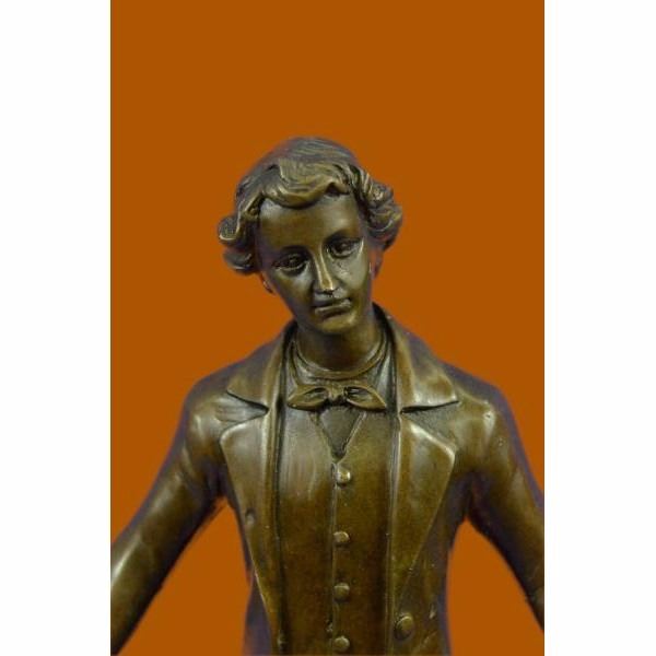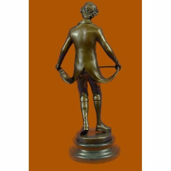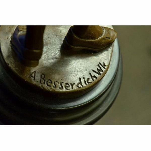 This is an elegant sculpture of the masterful classical music composer Ludwig von Beethoven standing in quiet contemplation. The attention to detail is fantastic and the sculpture is extremely lifelike. It is quite a classy sculpture and this sculpture will be sure to add a touch of class to any space in your home. This Bronze Sculpture was casted using the "Lost Wax Method". It has a brown patina and is mounted on a marble base and is signed Besserdich. This bronze sculpture is the perfect gift to give to a pianist. Condition: This sculpture is in perfect condition. Bronze Dimensions with Marble Base:Height 13.5" x Width 6" Marble size: Diameter 5" Height without base:12" Weight : 7 LBS Inventory : 25FT0326952