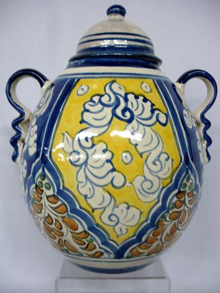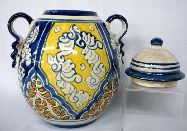 Talavera Olla With Lid and Handles. Pueblo Mexico. Measures 11.5''H (including lid)x10''. Buyers Pay Actual Shipping and Handling Charges(see terms and conditions for more information).