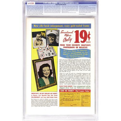 50. Since we cannot examine encapsulated notes or comics, they are sold "as is" without our grading opinion, and may not be returned for any reason. Auctioneer shall not be liable for any patent or latent defect or controversy pertaining to or arising from any encapsulated collectible. In any such instance, purchaser's remedy, if any, shall be solely against the service certifying the collectible.