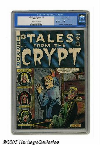 <B>Tales From the Crypt #23 Gaines File pedigree 1/10 (EC, 1951) CGC NM+ 9.6 Off-white to white pages.</B></I> This is a beautiful and near-immaculate copy, with art by the EC horror greats Al Feldstein, Graham Ingels, Johnny Craig, and Jack Davis (his first work for this title). Overstreet 2005 NM- 9.2 value = $810. CGC census 1/05: 5 in 9.6, 1 higher.