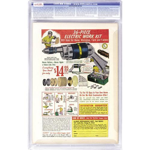 50. Since we cannot examine encapsulated notes or comics, they are sold "as is" without our grading opinion, and may not be returned for any reason. Auctioneer shall not be liable for any patent or latent defect or controversy pertaining to or arising from any encapsulated collectible. In any such instance, purchaser's remedy, if any, shall be solely against the service certifying the collectible.