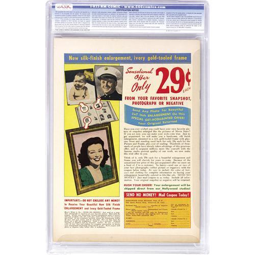 50. Since we cannot examine encapsulated notes or comics, they are sold "as is" without our grading opinion, and may not be returned for any reason. Auctioneer shall not be liable for any patent or latent defect or controversy pertaining to or arising from any encapsulated collectible. In any such instance, purchaser's remedy, if any, shall be solely against the service certifying the collectible.