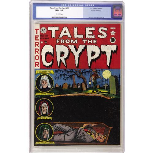 The last of Al Feldstein's covers for the title may be his most famous. Inside, Jack Davis, Joe Orlando, Jack Kamen, and Graham Ingels practice the fine art of horror storytelling, like no one outside the EC stable could. Overstreet 2006 NM- 9.2 value = $700. CGC census 12/06: 3 in 9.6, none higher.<BR><BR><b>Shipping:</b> Slabbed Comic (<a target="_blank" href="http://www.heritageauctions.com/common/shipping.php">view shipping information</a>)
