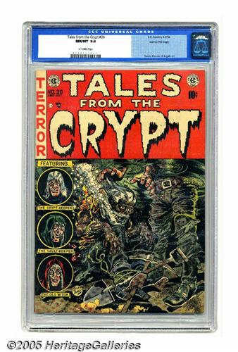 <B>Tales From the Crypt #30 Gaines File pedigree 1/12 (EC, 1952) CGC NM/MT 9.8 Off-white pages.</B></I> In this issue's lead story "Gas-tly Prospects," a claim-jumper who resorts to murder finds his victim just won't die. Jack Davis drew the tale, which is previewed on Davis' cover scene. Other artists represented are Joe Orlando, Jack Kamen, and Graham Ingels. When it comes to collecting ECs, you can't beat the Gaines File copies, and this one is certified as copy 1 of 12, making it the best of the best. Overstreet 2005 NM- 9.2 value = $650. CGC census 6/05: 2 in 9.8, none higher.