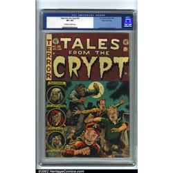 Tales From the Crypt #39 Gaines File pedigree (EC, 1953). Jack Davis' cover for this issue reminds us why kids are afraid to play in graveyards, as Joe Orlando, Jack Kamen and Graham Ingels contribute to the macabre interior art. A very beautiful comic from the publisher's files, this copy has a great spine, sharp corners, great color and full gloss. A real beauty. CGC VF+ 8.5 Off-white to white pages. Overstreet 2001 FN 6.0 value = $109; NM 9.4 value = $400. Important notice: We expect to be auctioning lots at the rate of 200-250 per hour. Sometimes eBay Premier live bid software cannot keep up with that pace, so we strongly recommend that you place a realistic proxy bid now as insurance to avoid disappointment. Also please note that all Heritage/CAA lots purchased through eBay Premier carry a 20% Buyer's Premium.