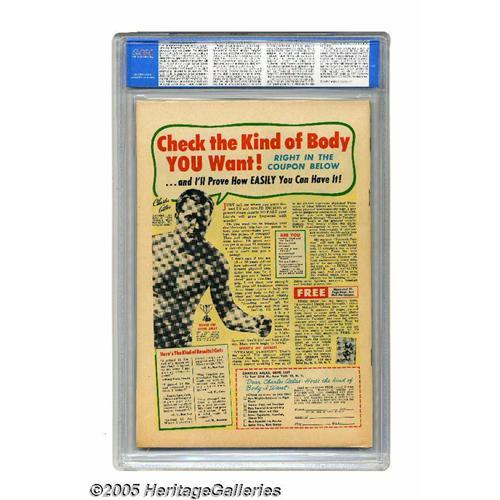 <B>Tales From the Crypt #40 Gaines File pedigree 9/12 (EC, 1954) CGC VF+ 8.5 Off-white to white pages.</B></I> This comic was mentioned both in Senate hearings and in an anti-comics editorial in the <I>Hartford Courant</B></I>. Hmm, what could have caused all the fuss? The part where the guy gets eaten alive by a lion? Or the part where a guy gets buried alive only to be dug up and eaten by a gh... OK, we're starting to catch on. The issue has a Jack Davis cover, with interior art by Davis, George Evans, Bernie Krigstein, and Graham Ingels. Overstreet 2005 VF 8.0 value = $300; VF/NM 9.0 value = $433. CGC census 7/05: 3 in 8.5, 5 higher. <BR><BR><B>Important notice:</B> Heritage usually auctions material at the rate of 200-250 lots per hour. On some occasions eBay Live bid software or the Internet may not be able to keep up with the pace of the auction. We recommend placing a realistic absentee bid now as insurance to avoid disappointment. Occasionally the auctioneer may eliminate or reject an eBay Live bid, and the auctioneer may also reopen a lot after the close of the eBay live bidding (usually because we missed an audience bid), and may reject your bid even if it shows you as the winning bidder. By bidding via eBay Live, you agree that Heritage may award the lot to another bidder at its sole discretion under the circumstances described above or any other reasonable circumstances. Since eBay bids are not shown to us until we open the lot on the floor, we treat those bids just like floor bids. In most cases the floor responds before the eBay bid is presented to us, due to Internet lag time, so for consistency we have made it a policy that floor bids are always considered first over tie eBay live bids. Also please note that all Heritage lots purchased through eBay Live carry a 20% Buyer's Premium. Please make sure you read the Terms and Conditions before you bid. This lot is being auctioned in conjunction with a live floor auction by Heritage Galleries & Auctioneers