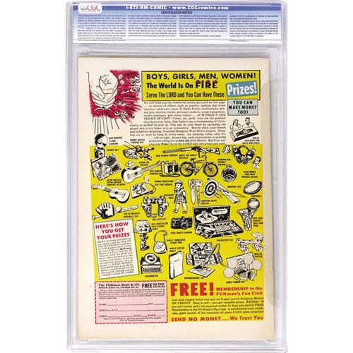 50. Since we cannot examine encapsulated notes or comics, they are sold "as is" without our grading opinion, and may not be returned for any reason. Auctioneer shall not be liable for any patent or latent defect or controversy pertaining to or arising from any encapsulated collectible. In any such instance, purchaser's remedy, if any, shall be solely against the service certifying the collectible.