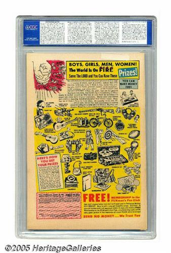 50. Auctioneer offers no opinion as to the validity of a grade assigned by any third-party grading service. Since we cannot examine C.G.A. encapsulated notes or Comics Guaranty Corporation (CGC) encapsulated comics, they are sold "as is" without our grading opinion, and may not be returned for any reason. Auctioneer shall not be liable for any patent or latent defect or controversy pertaining to or arising from any encapsulated collectible. In any such instance, purchaser's remedy, if any, shall be solely against the certification service certifying the collectible.