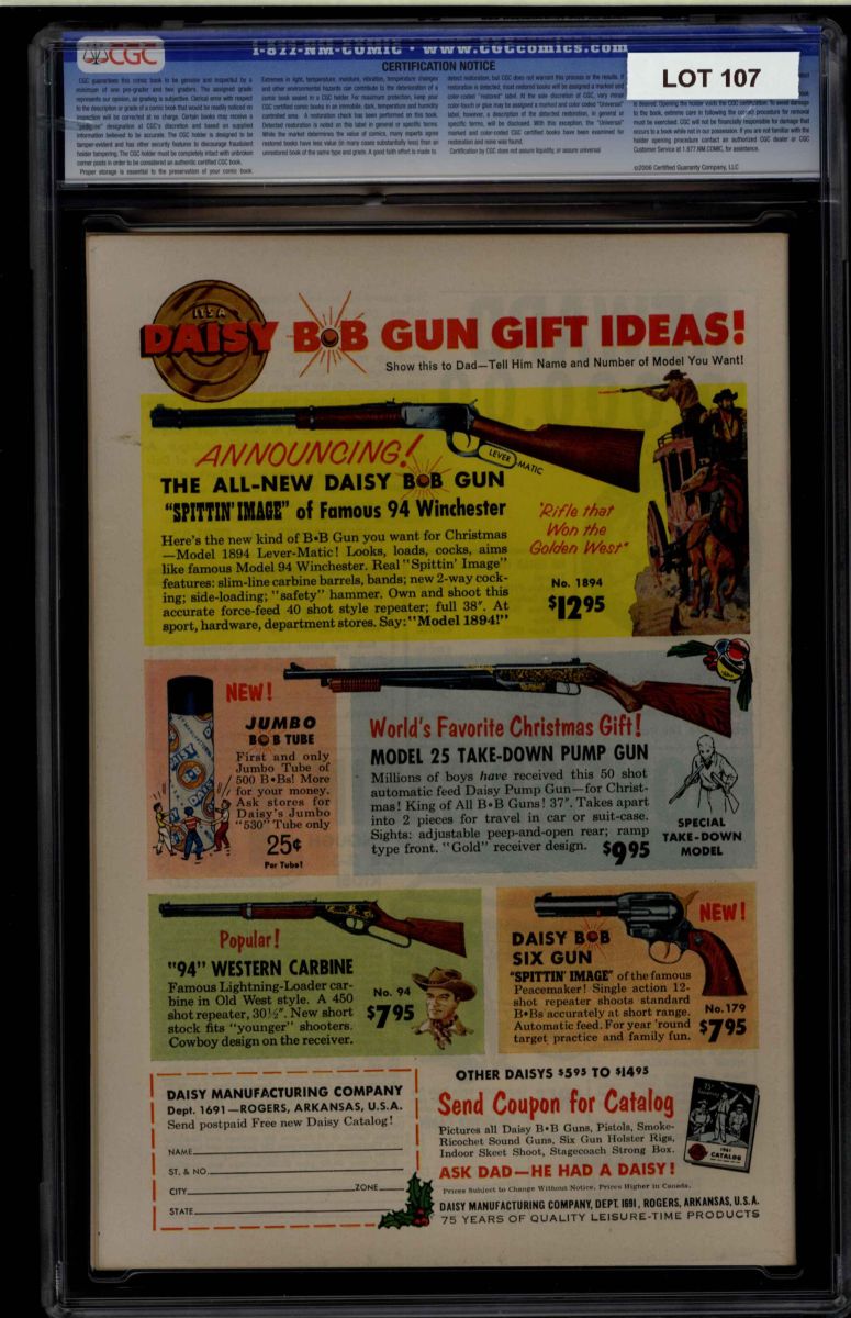 The Auctioneer has reserved the right to reject any and all bids, and to bid at the auction. Auctioneers Auctions are not on approval. Auctioneer does not allow certified material to be returned because of possible differences of opinion with respect to the grade offered by any third party organization, dealer, or service. Absolutely no guarantee of grade is offered for un-certified property sold and subsequently submitted to a third-party grading service. There will be no exceptions to this policy. Under extremely limited circumstances, (e.g. gross cataloging error) a purchaser, who did not bid from the floor, may request Auctioneer to evaluate voiding a sale; such request must be made in writing detailing the alleged gross error, and submission of the lot to the Auctioneer must be pre-approved by the Auctioneer. Bidder must notify Auctioneer in writing of such request within three (3) days of the non-floor bidder receipt of the lot. Any lot that is to be evaluated must be in our offices within 30 days after Auction. Grading does not qualify for this evaluation process nor do such complaints constitute a basis to challenge the authenticity of a lot. AFTER THAT 30-DAY PERIOD, NO LOTS MAY BE RETURNED FOR REASONS OTHER THAN AUTHENTICITY. Lots returned must be housed intact in the original holder. No lots purchased by floor Bidders may be returned (including those Bidders acting as agents for others). Late remittance for purchases may be considered just cause to revoke all return privileges. B: Auctions conducted solely on the Internet have a THREE (3) DAY RETURN POLICY: Lots paid for within seven days of the Auction closing are sold with a three (3) day return privilege. You may return lots under the following conditions: Within three days of receipt of the lot, you must first notify Auctioneer by contacting Client Service by phone (314-680-8599) or e-mail (moundcityauctions@gmail.com), and immediately mail the lot(s) fully insured to the attention of Returns, Mound City Auctions 1081 Teson Rd. Hazelwood, MO. 63042. Lots must be housed intact in their original holder and in their original condition. You are responsible for the insured, safe delivery of any lots. Auctioneer will not be responsible for lots returned in non-registered mail or lots returned without prior authorization per section B. A non-negotiable return fee of 5% of the purchase price ($10 per lot minimum) will be deducted from the refund for each returned lot or billed directly. Postage and handling fees are not refunded. After the three-day period (from receipt), no items may be returned for any reason. Late remittance for purchases revokes all Return-Restock privileges. C: Bidders who have inspected the lots prior to the auction will not be granted any return privileges. D: Comic books sold referencing a third-party grading service are sold “as is” without any express or implied warranty. Certain warranties may be available from the grading services and the Bidder is referred to them for further details: Certified Guaranty Company, LLC. (CGC), P.O. Box 4738, Sarasota, FL 34230. E: Bidders who intend to challenge authenticity or provenance of a lot must notify Auctioneer in writing within thirty (30) days of the Auctions conclusion. In the event Auctioneer cannot deliver the lot or subsequently it is established that the lot lacks title, provenance, authenticity, or other transfer or condition issue is claimed, Auctioneer's liability shall be limited to rescission of sale and refund of purchase price; in no case shall Auctioneer's maximum liability exceed the high bid on that lot, which bid shall be deemed for all purposes the value of the lot. After one year has elapsed, Auctioneer's maximum liability shall be limited to any commissions and fees Auctioneer earned on that lot. F: All comics are guaranteed genuine, but are not guaranteed as to grade, since grading is a matter of opinion, an art and not a science, and therefore the opinion rendered by the Auctioneer or any third party grading service may not agree with the opinion of others (including trained experts), and the same expert may not grade the same item with the same grade at two different times. G: Since we cannot examine encapsulated comics, they are sold “as is”without our grading opinion, and may not be returned for any reason. Auctioneer shall not be liable for any patent or latent defect or controversy pertaining to or arising from any encapsulated collectible. In any such instance, purchaser's remedy, if any, shall be solely against the service certifying the collectible. H: Due to changing grading standards over time, differing interpretations, and to possible mishandling of items by subsequent owners, Auctioneer reserves the right to grade items differently than shown on certificates from any grading service that accompany the items. Auctioneer also reserves the right to grade items differently than the grades shown in the prior catalog should such items be reconsigned to any future auction. I: Although consensus grading is employed by most grading services, it should be noted as aforesaid that grading is not an exact science. In fact, it is entirely possible that if a lot is broken out of a plastic holder and resubmitted to another grading service or even to the same service, the lot could come back with a different grade assigned. J: Certification does not guarantee protection against the normal risks associated with potentially volatile markets. The degree of liquidity for certified collectibles will vary according to general market conditions and the particular lot involved. For some lots there may be no active market at all at certain points in time."