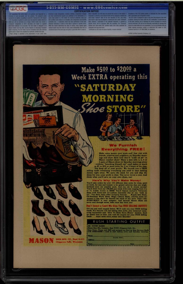 The Auctioneer has reserved the right to reject any and all bids, and to bid at the auction. Auctioneers Auctions are not on approval. Auctioneer does not allow certified material to be returned because of possible differences of opinion with respect to the grade offered by any third party organization, dealer, or service. Absolutely no guarantee of grade is offered for un-certified property sold and subsequently submitted to a third-party grading service. There will be no exceptions to this policy. Under extremely limited circumstances, (e.g. gross cataloging error) a purchaser, who did not bid from the floor, may request Auctioneer to evaluate voiding a sale; such request must be made in writing detailing the alleged gross error, and submission of the lot to the Auctioneer must be pre-approved by the Auctioneer. Bidder must notify Auctioneer in writing of such request within three (3) days of the non-floor bidder receipt of the lot. Any lot that is to be evaluated must be in our offices within 30 days after Auction. Grading does not qualify for this evaluation process nor do such complaints constitute a basis to challenge the authenticity of a lot. AFTER THAT 30-DAY PERIOD, NO LOTS MAY BE RETURNED FOR REASONS OTHER THAN AUTHENTICITY. Lots returned must be housed intact in the original holder. No lots purchased by floor Bidders may be returned (including those Bidders acting as agents for others). Late remittance for purchases may be considered just cause to revoke all return privileges. B: Auctions conducted solely on the Internet have a THREE (3) DAY RETURN POLICY: Lots paid for within seven days of the Auction closing are sold with a three (3) day return privilege. You may return lots under the following conditions: Within three days of receipt of the lot, you must first notify Auctioneer by contacting Client Service by phone (314-680-8599) or e-mail (moundcityauctions@gmail.com), and immediately mail the lot(s) fully insured to the attention of Returns, Mound City Auctions 1081 Teson Rd. Hazelwood, MO. 63042. Lots must be housed intact in their original holder and in their original condition. You are responsible for the insured, safe delivery of any lots. Auctioneer will not be responsible for lots returned in non-registered mail or lots returned without prior authorization per section B. A non-negotiable return fee of 5% of the purchase price ($10 per lot minimum) will be deducted from the refund for each returned lot or billed directly. Postage and handling fees are not refunded. After the three-day period (from receipt), no items may be returned for any reason. Late remittance for purchases revokes all Return-Restock privileges. C: Bidders who have inspected the lots prior to the auction will not be granted any return privileges. D: Comic books sold referencing a third-party grading service are sold “as is” without any express or implied warranty. Certain warranties may be available from the grading services and the Bidder is referred to them for further details: Certified Guaranty Company, LLC. (CGC), P.O. Box 4738, Sarasota, FL 34230. E: Bidders who intend to challenge authenticity or provenance of a lot must notify Auctioneer in writing within thirty (30) days of the Auctions conclusion. In the event Auctioneer cannot deliver the lot or subsequently it is established that the lot lacks title, provenance, authenticity, or other transfer or condition issue is claimed, Auctioneer's liability shall be limited to rescission of sale and refund of purchase price; in no case shall Auctioneer's maximum liability exceed the high bid on that lot, which bid shall be deemed for all purposes the value of the lot. After one year has elapsed, Auctioneer's maximum liability shall be limited to any commissions and fees Auctioneer earned on that lot. F: All comics are guaranteed genuine, but are not guaranteed as to grade, since grading is a matter of opinion, an art and not a science, and therefore the opinion rendered by the Auctioneer or any third party grading service may not agree with the opinion of others (including trained experts), and the same expert may not grade the same item with the same grade at two different times. G: Since we cannot examine encapsulated comics, they are sold “as is”without our grading opinion, and may not be returned for any reason. Auctioneer shall not be liable for any patent or latent defect or controversy pertaining to or arising from any encapsulated collectible. In any such instance, purchaser's remedy, if any, shall be solely against the service certifying the collectible. H: Due to changing grading standards over time, differing interpretations, and to possible mishandling of items by subsequent owners, Auctioneer reserves the right to grade items differently than shown on certificates from any grading service that accompany the items. Auctioneer also reserves the right to grade items differently than the grades shown in the prior catalog should such items be reconsigned to any future auction. I: Although consensus grading is employed by most grading services, it should be noted as aforesaid that grading is not an exact science. In fact, it is entirely possible that if a lot is broken out of a plastic holder and resubmitted to another grading service or even to the same service, the lot could come back with a different grade assigned. J: Certification does not guarantee protection against the normal risks associated with potentially volatile markets. The degree of liquidity for certified collectibles will vary according to general market conditions and the particular lot involved. For some lots there may be no active market at all at certain points in time."