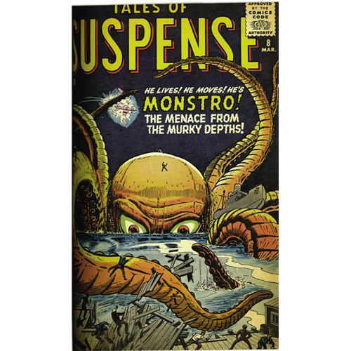 <B>Tales of Suspense #1-16 Bound Volume (Marvel, 1959-61).</B></I> These "pre-hero" issues are a pain to find, but what a delight they are when you get your hands on them! Thrill to the likes of Goom, Googam (son of Goom), Kraa, Gor-Kill, Sporr, and Monstro, plus some names which Marvel would re-use later like Cyclops, Diablo, and Electro. These books teem with Jack Kirby and Steve Ditko art, and there's even art by some surprising names like Reed Crandall and Al Williamson. These are trimmed copies that have been bound into a black hardcover volume. The condition averages GD to VG; some have tape repair to the covers, and the pages show light tanning. The title and issue numbers are embossed on the spine of the volume. Overstreet VG 4.0 value for group = $1,430.