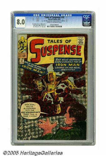 <B>Tales of Suspense #42 (Marvel, 1963) CGC VF 8.0 Cream to off-white pages.</B></I> Featuring Iron Man. Jack Kirby cover. Don Heck, Steve Ditko, and Larry Lieber art. Overstreet 2005 VF 8.0 value = $376. CGC census 6/05: 4 in 8.0, 25 higher. <I>From the collection of Joe and Nadia Mannarino.</B></I>