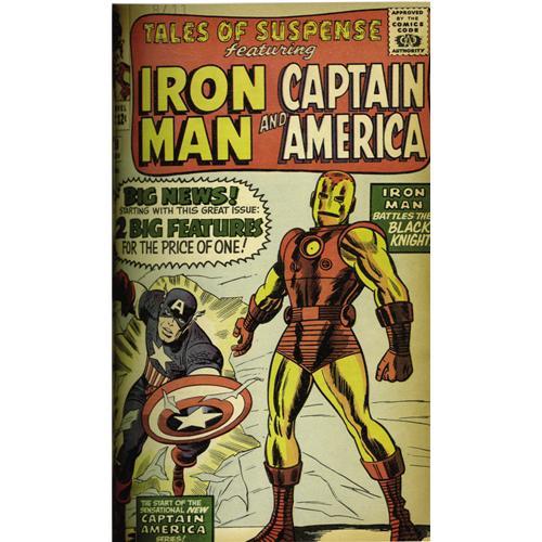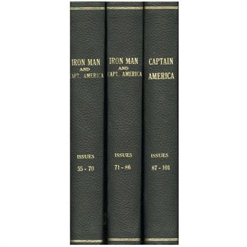 <B>Tales of Suspense #55-99 and Captain America #100 and 101 Bound Volumes (Marvel, 1964-68).</B></I> Iron Man and Captain America star in these classic double-feature issues, which have been trimmed and bound into three black hardcover volumes. And as a bonus, the third volume ends with the first two issues of Cap's solo book, which continued the numbering from <B>Tales of Suspense</B></I>. The pages show light tanning, but the cover gloss is particularly impressive. Overstreet VG 4.0 value for group = $1,038.