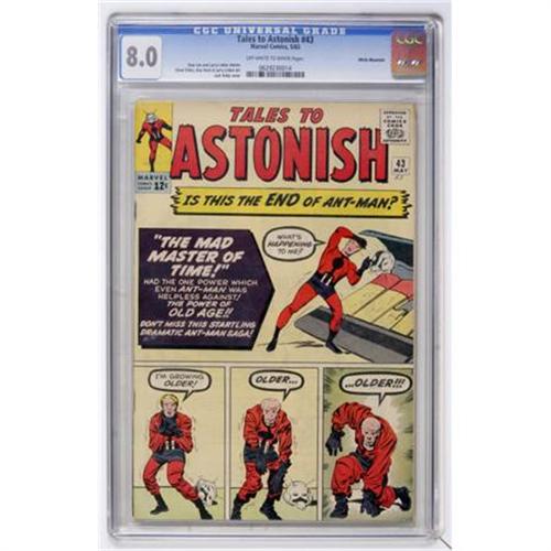 <B>Tales to Astonish #43 White Mountain pedigree (Marvel, 1963) CGC VF 8.0 Off-white to white pages.</B></I> Jack Kirby cover. Ant-Man story with Don Heck art. Backup features have Steve Ditko and Larry Lieber art. Overstreet 2007 VF 8.0 value = $248. CGC census 6/07: 8 in 8.0, 14 higher.<BR><BR><b>Shipping:</b> Comics - Slabbed (certified) (<a target="_blank" href="http://www.heritageauctions.com/common/shipping.php">view shipping information</a>)