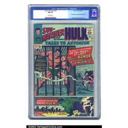 Tales to Astonish #70 (Marvel, 1965) CGC NM 9.4 Off-white pages. Sub-Mariner and Incredible Hulk begin. Kirby double-paneled cover. One of the nicest copies of this issue yet certified by CGC. Overstreet 2002 NM 9.4 value = $110. Important notice: We expect to be auctioning lots at the rate of 200-250 per hour. Sometimes eBay Premier live bid software cannot keep up with that pace, so we strongly recommend that you place a realistic proxy bid now as insurance to avoid disappointment. Also please note that all Heritage/CAA lots purchased through eBay Premier carry a 20% Buyer's Premium. Please make sure you read the Terms and Conditions.