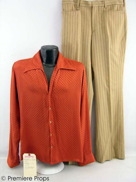 Petey's (Don Cheadle) red orange "Aquarius" L/S button up shirt (Inside shirt is embroidered with Petey's initials "PG"). Khaki with brown pin stripe pants. (Includes wardrobe tag / screen worn / pool hall scene)