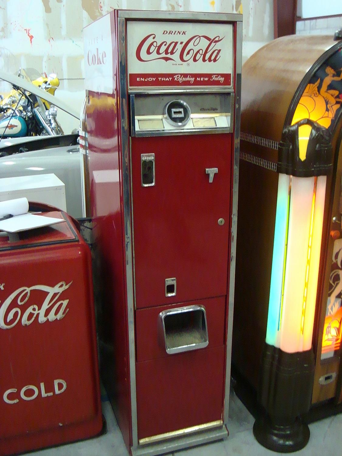 Vintage Cavailar Coca-Cola Coke Machine. This slender machine stands 62 inches tall by 15 wide and 24 inches deep. Please see our wide selection of high quality Coke & Pepsi Vending Machines in our present auction.