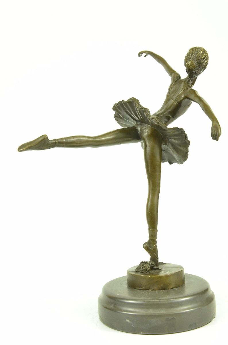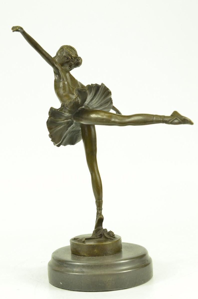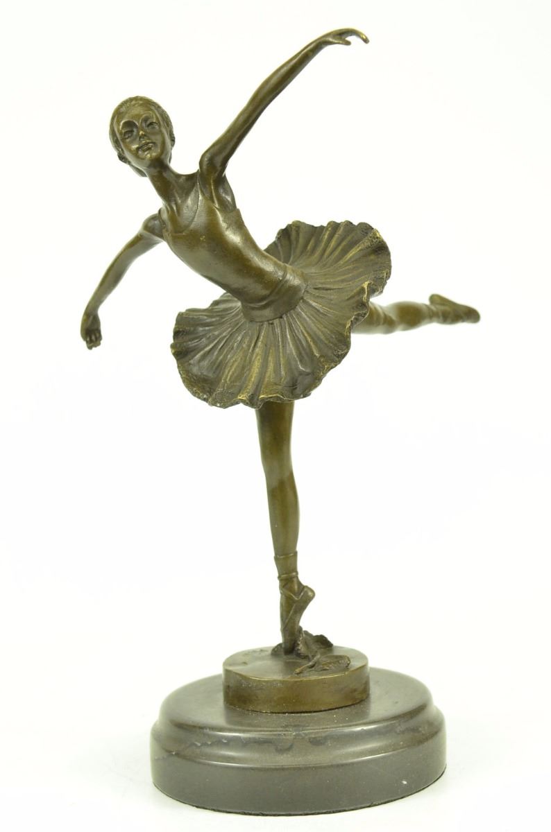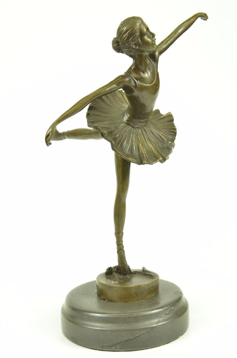 A Prima Ballerina Puts On A Show. Well Trained In The Art That She Loves, She Shows Off Her Agility, Balance And Flexibility. She Elevates Her Long Leg Far Behind Her. Her Chest Pushes Out And Her Head Tips Up To The Sky, Basking In The Glory Of Being Center Stage. Her Spine Curves, Touching Her Back To Her Tutu. Her Tutu Spreads Around Her Hips Like A Halo. Every Movement Is Deliberate And Structured, From The Tips Of Her Toes To The Tips Of Her Fingers. 100% Bronze, This Handmade Brown Patina Sculpture Was Cast Using The "Lost Wax Method" And Mounted On A Black Marble Base. Bronze Dimensions With Marble Base: Height 11 X Width 9 inches. Weight: 5 Lbs.