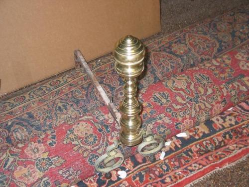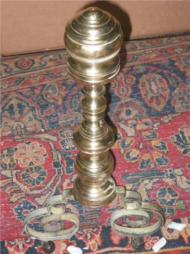 Ornate brass andirons, excellent shape, 23" by 11" by 25"