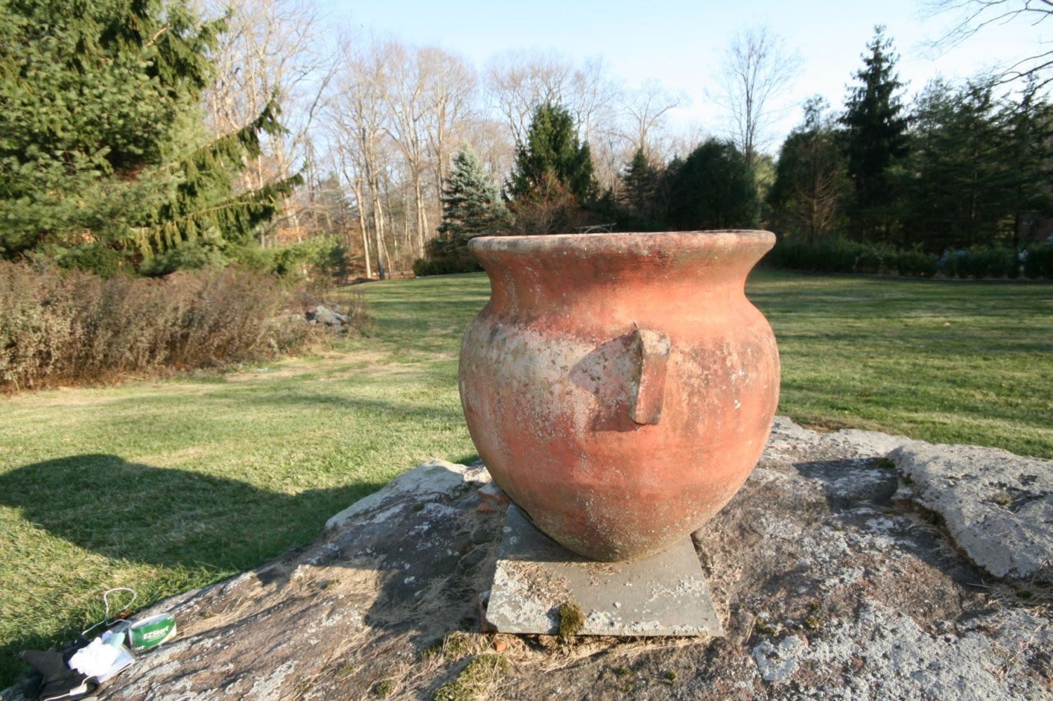 X Large Beautiful Mediterranean Landscape Centerpiece Planter. Dimensions 29" h x 24 " across. Opening on lower side of Planter is for drainage.
