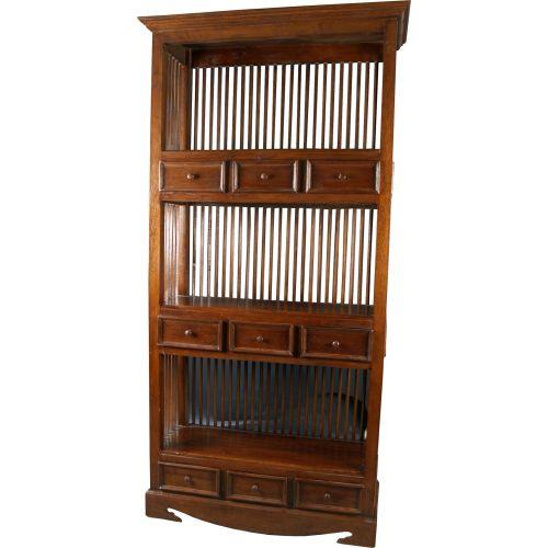 Tall Wooden Bookcase, Mahogany 3 sets of Drawers