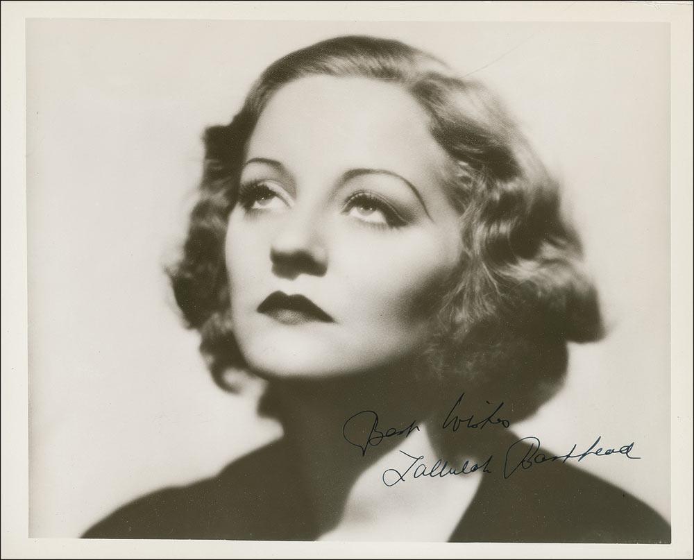 Attractive vintage glossy 10 x 8 head-and-shoulders photo, signed in fountain pen, “Best wishes, Tallulah Bankhead.” Some light creasing along top edge and top right corner, otherwise fine condition.