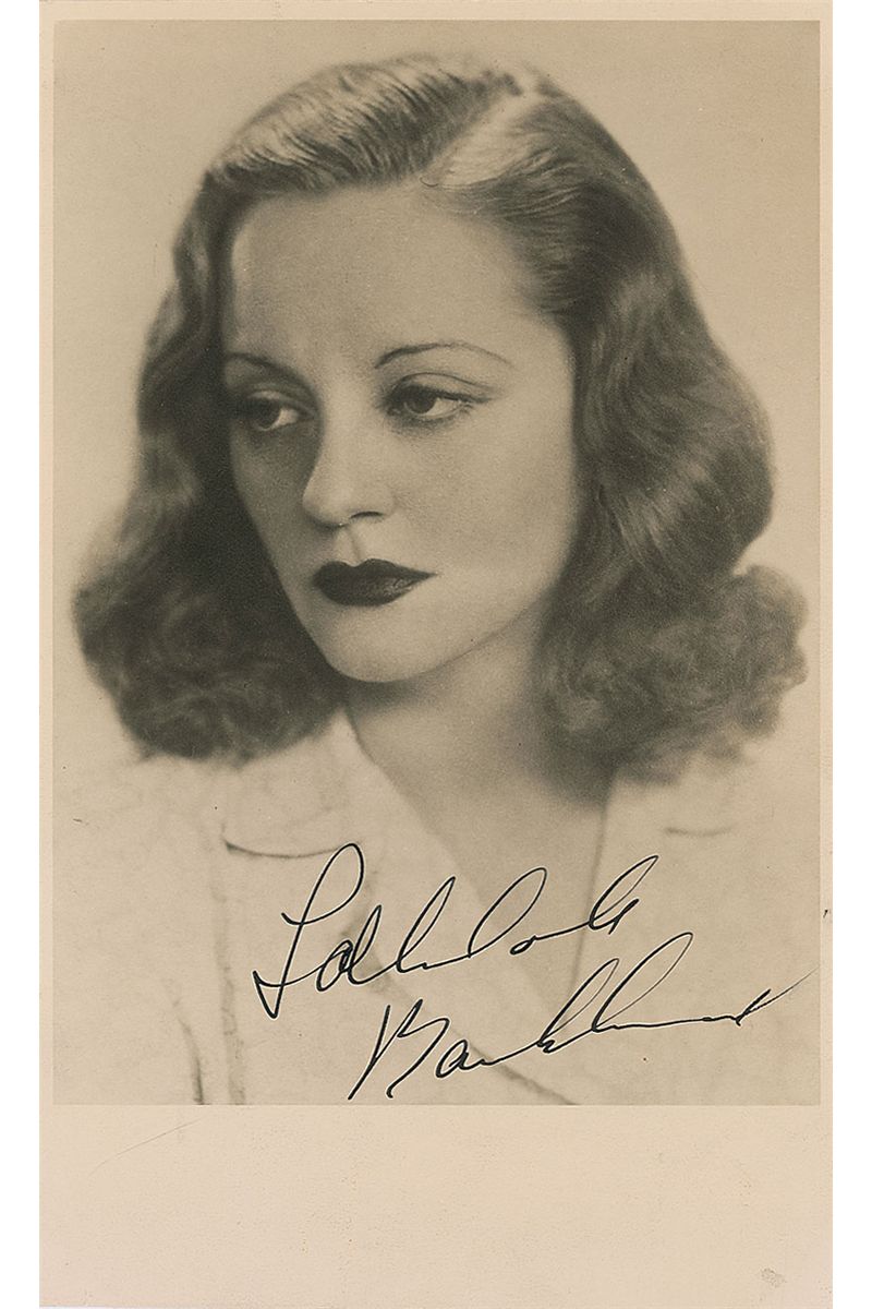 Vintage matte-finish 4.75 x 7.5 head-and-shoulders photo of Bankhead, signed in black ink. In fine condition.