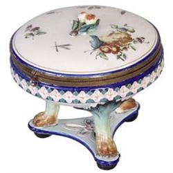 Bonboniere. Bonboniere Painted faiance. Not marked, 19th century, probably Italian. Restored. 11 by 15,5 cm