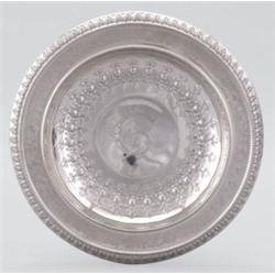 1867 - 1902 közötti behozatali jeggyel, ezüst, Wilhelm Binder, Schwab Gründ, fémnyomott kerek forma, gépi vésett dísszel, "JG" monogramm vésettel, 313,8 g; d: 26 cm