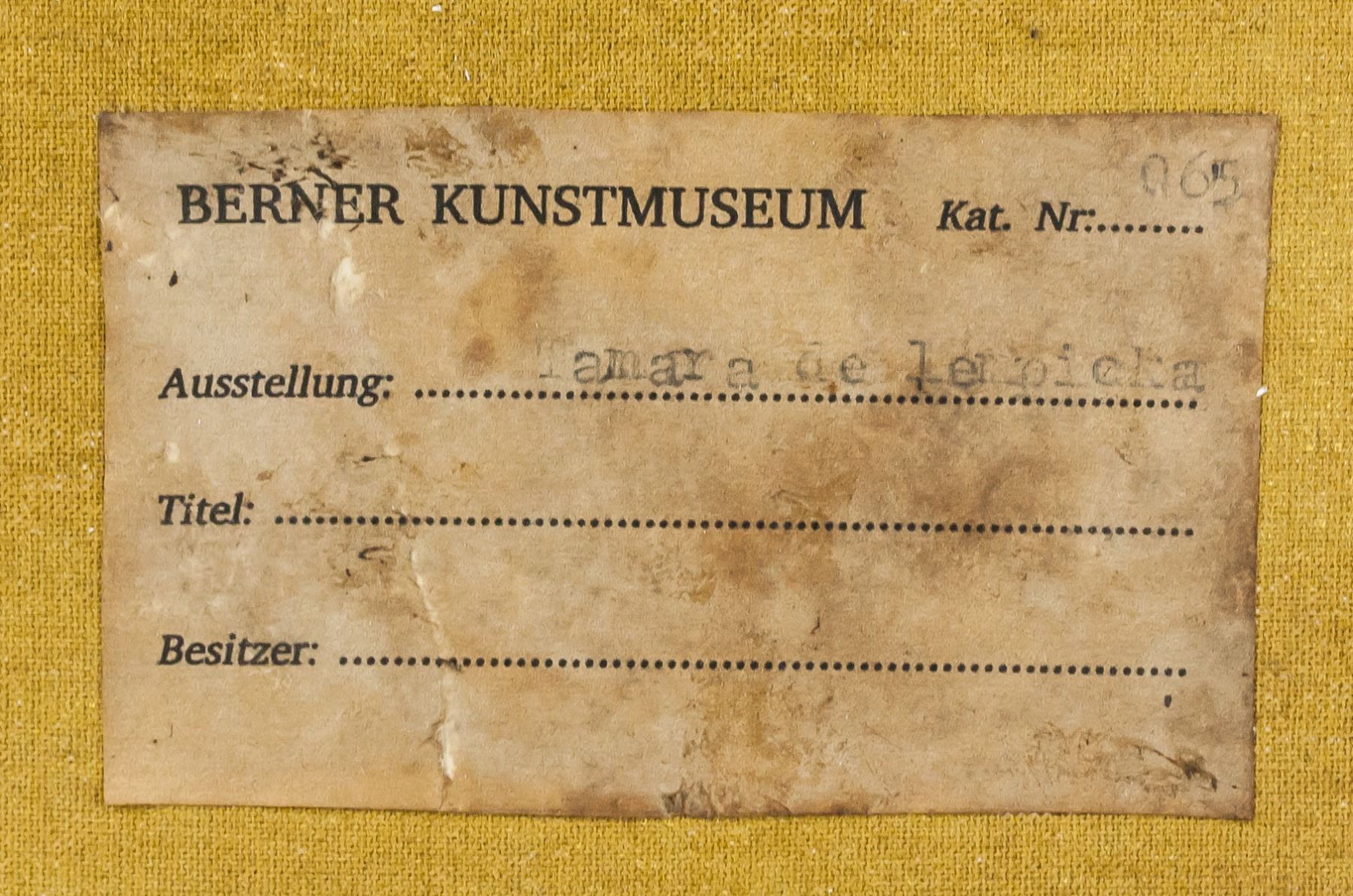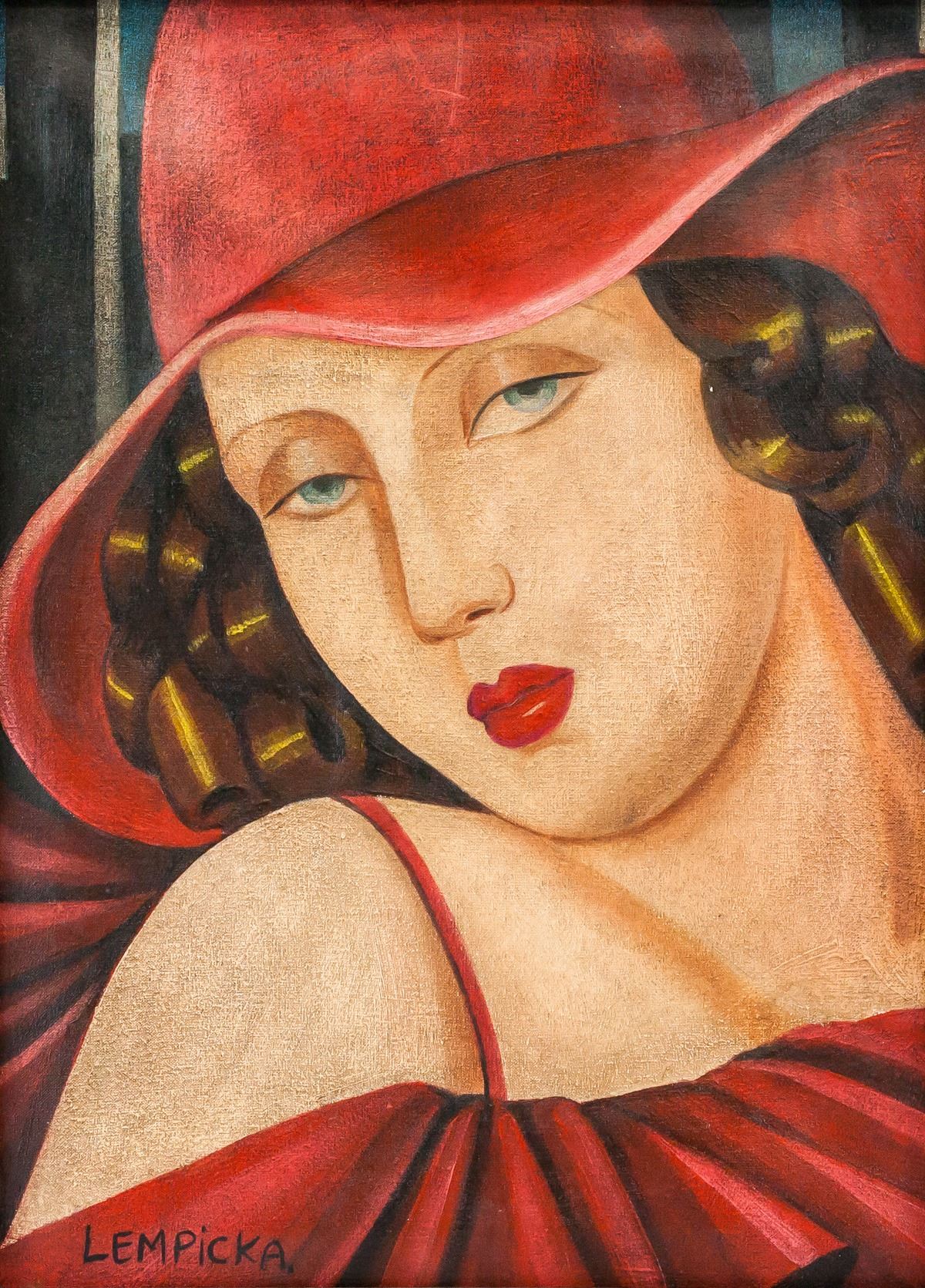 Oil on canvas, framed. Featuring a portrait of a woman in red hat. Signed LEMPICKA on the lower left corner. Stamped Musee d'Orsay on verso. Gallery label affixed to verso inscribed The Collection of MR. and Mrs. LEIGH B. BLOCK / Chicago, Illinois and stamped Galerie Mathias Fels PARIS on verso. Another gallery label affixed to verso inscribed BERNER KUNSTMUSEUM and Tamara de Lempicka. Also stamped MUSEO THYSSEN - BORNEMISZA. Attributed to Tamara de Lempicka (1898-1980, Polish). 40 x 30 cm (16 x 12 inches). Framed size: 52 x 42 cm (21 x 16.5 inches). PROVENANCE: This lot carries limited provenance from a Southern Ontario estate