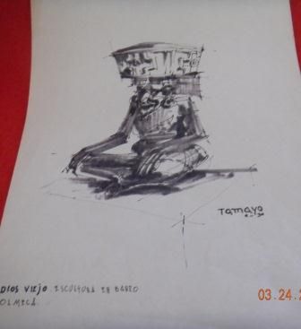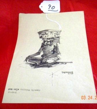 1930's Pen and Ink Drawing by Tamayo, Circa 1930's. Pre-Columbian subject. Picture measures 8 1/2 by 11 inches. Shipping 20.00