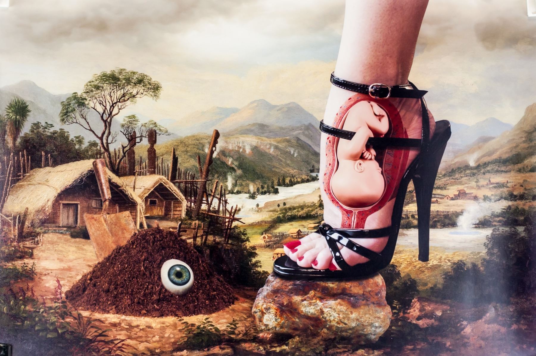 Digital collage, print on photo paper. Featuring surrealist scene titled "Birth Stool". Verso with artist stamp and signed demirci. No. 3 of 30. Created by Tan Tolga Demirci (1974- , Turkish). With certificate of authenticity offered by artist directly. 44 x 66 cm (17.3 x 26 inches)