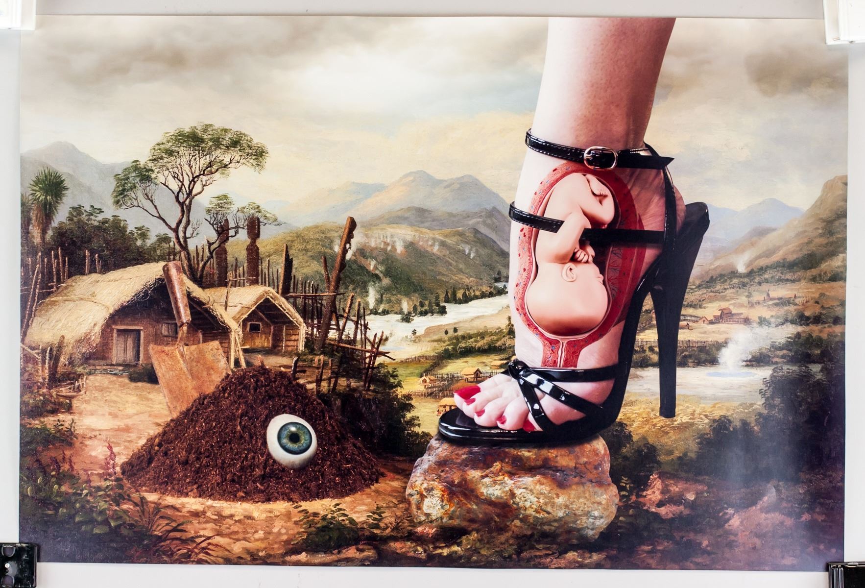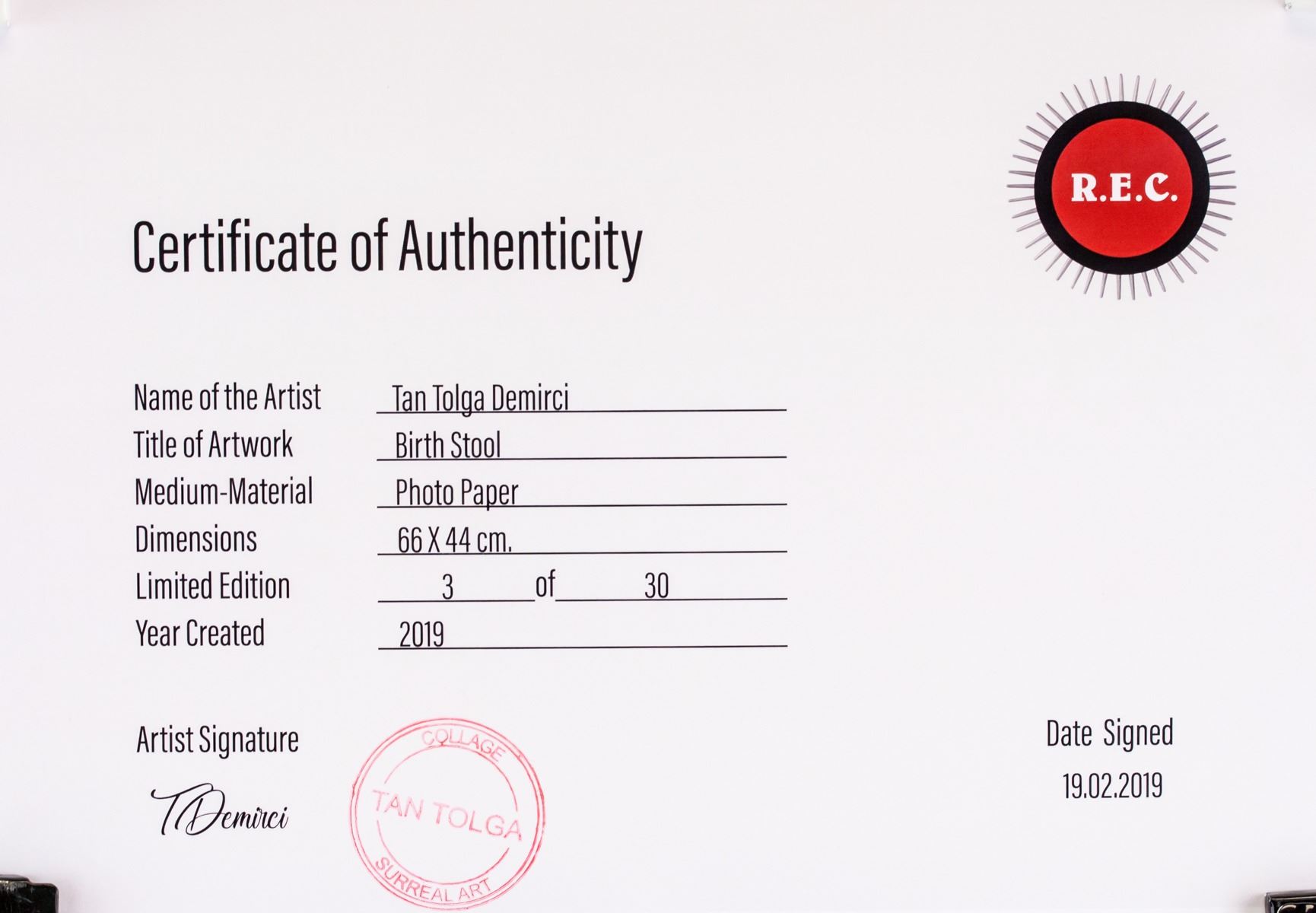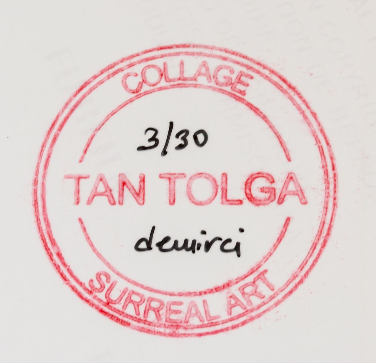 Digital collage, print on photo paper. Featuring surrealist scene titled "Birth Stool". Verso with artist stamp and signed demirci. No. 3 of 30. Created by Tan Tolga Demirci (b.1974, Turkish). With certificate of authenticity offered by artist directly. 44 x 66 cm (17.3 x 26 inches)