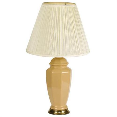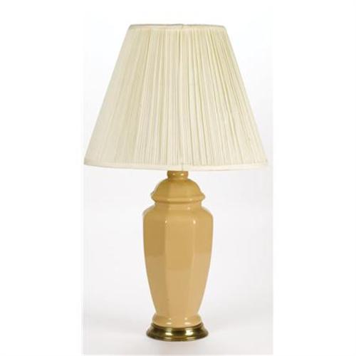 <B>Tan Ceramic Lamp</B></I> <BR>With brass bases, pleated white shades<BR>31-1/4 x 18 x 18 inches (each) <BR><BR><b>Shipping:</b> Requires 3rd Party Shipping (<a target="_blank" href="http://www.heritageauctions.com/common/shipping.php">view shipping information</a>)