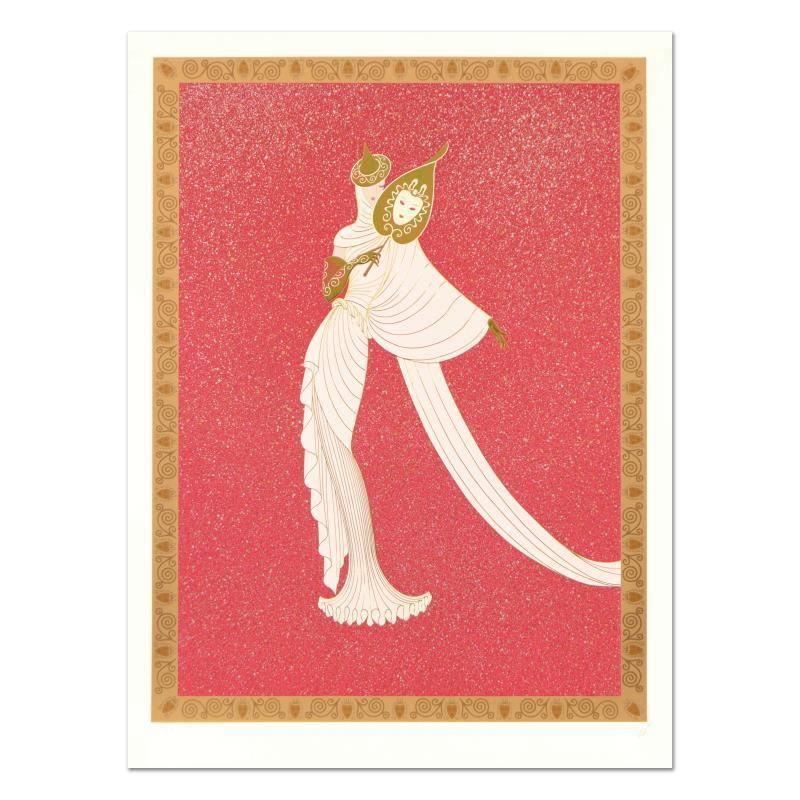 "Tanagra Red" is a hand signed limited edition serigraph on paper by Erte (1892-1990), numbered 70/100. Includes Certificate of Authenticity. Measures approx. 30.5" x 41" (border), 27.5" x 36.5" (image). Due to the age of this piece and the delicate nature of the paper it may have some slight imperfections.