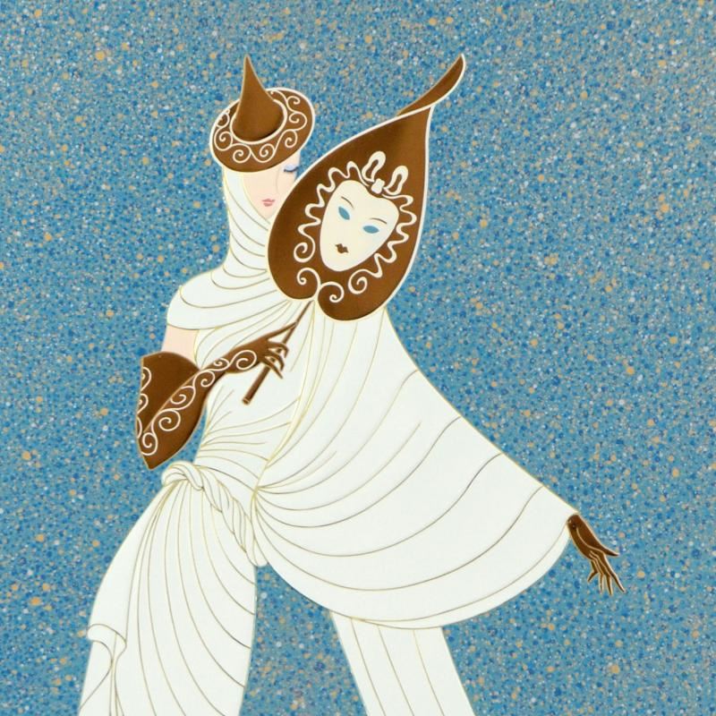 "Tanagra Turquoise" is a limited edition serigraph on paper, numbered and hand signed by the artist. Includes Certificate of Authenticity! Measures approx. 30.5" x 41" (with border), 27" x 36" (image). ** Please note: Due to the age of this piece and the delicate nature of the paper it may have some slight imperfections. **