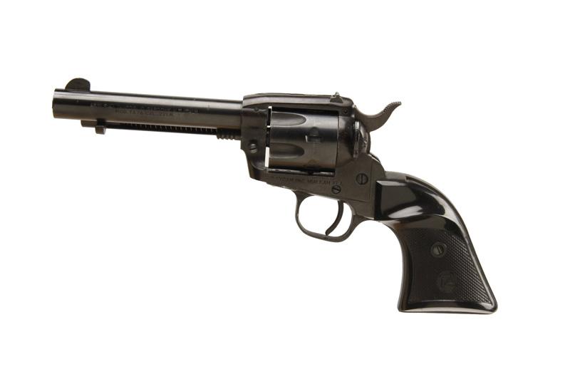 Tanfoglio Mdl TA76 Cal .22LR SN:833204 Italian copy of Colt Scout .22 single action revolver with unique safety lever installed on the left side of the frame across from the loading gate. Blued finish, black plastic checkered grips, 4 3/4" barrel with adItalian copy of Colt Scout .22 single action revolver with unique safety lever installed on the left side of the frame across from the loading gate. Blued finish, black plastic checkered grips, 4 3/4" barrel with adjustable rear sight forwindage, good bore and action. Condition: Very good with not a lot of use. Some scratches and wear to the frame on the right side of the top strap. Fully import marked by Excam.
